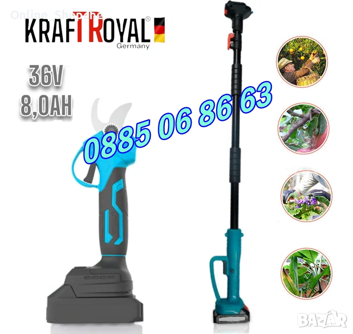 - Лесна употреба: Телескопичният прът позволява лесен достъп до високи и труднодостъпни клони.
