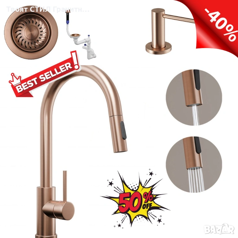 🔥 МЕДЕН СМЕСИТЕЛ + МЕДЕН СИФОН + МЕДЕН ДОЗАТОР