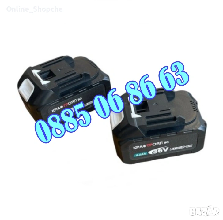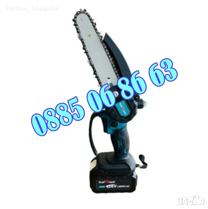 Комплект 4 в 1 от акумулаторна лозарска ножица, акумулаторен мини верижен трион с 15 см шина, акумулаторен въздушен турбо пистолет и телескопичен прът 36V 8Ah
