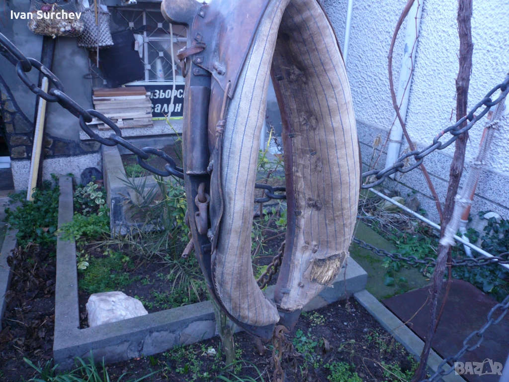 ХАМУТ СТАР ОТ ПЕТДЕСТТЕ ГОДИНИ ЗДРАВ И ЗАПАЗЕН ЗА КОЛЕКЦИОНЕРИ ИЛИ ДЕКОР ОТ АВСТРИИСКАТА ПОЖАРНА ПОВЕЧЕ НА ЛС,.,