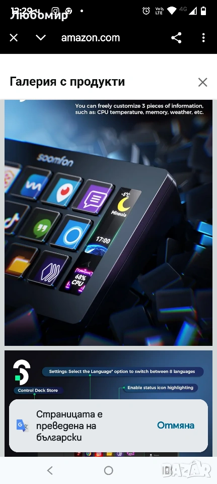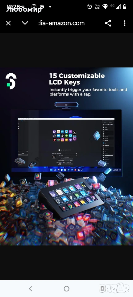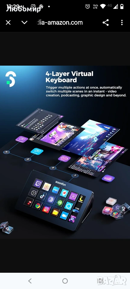 SOOMFON Stream Controller, устройство за управление на стрийминг с 15 LCD макро клавиша,