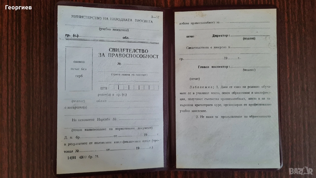 Свидетелство за правоспособност соц период , снимка 1 - Антикварни и старинни предмети - 53256773 Свидетелство за правоспособност соц период , снимка 2 - Антикварни и старинни предмети - 53256773 1/2