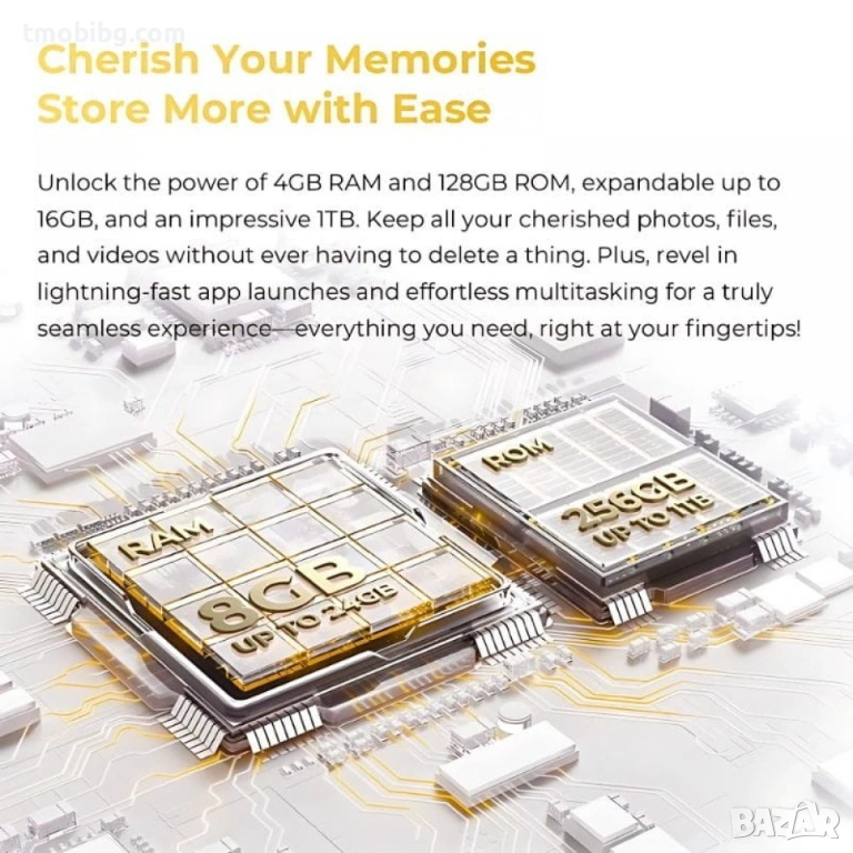 OUKITEL C61 Pro с 256GB вътрешна памет. Разполага с 8GB RAM за плавно използване на приложения и игри. Идеален избор за мобилност и ежедневни задачи.