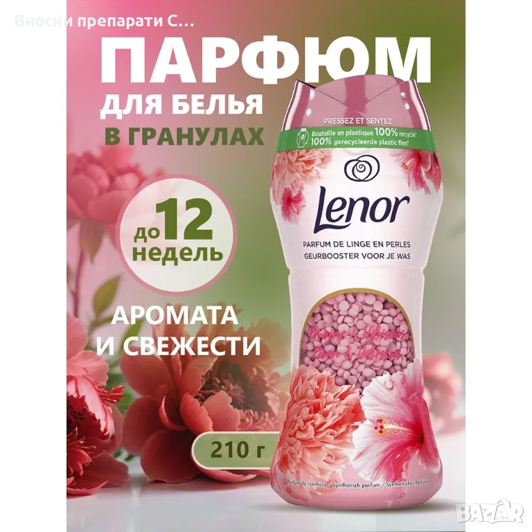 Lenor Pivoine & Hibiscus Парфюмни перли за пране с аромат на Божур и Хибискус 210 г.