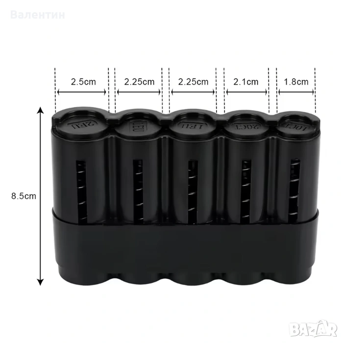 Благодарение на прецизно оформените отделения, монетите стоят подредени и защитени от разпиляване, което улеснява намирането им в движение. Компактният размер позволява монтиране на различни места в автомобила — жабката, поставката за чаши, вратата или конзолата. Това го прави практичен избор както за професионални шофьори, така и за всички, които искат по-организирано и удобно шофиране.