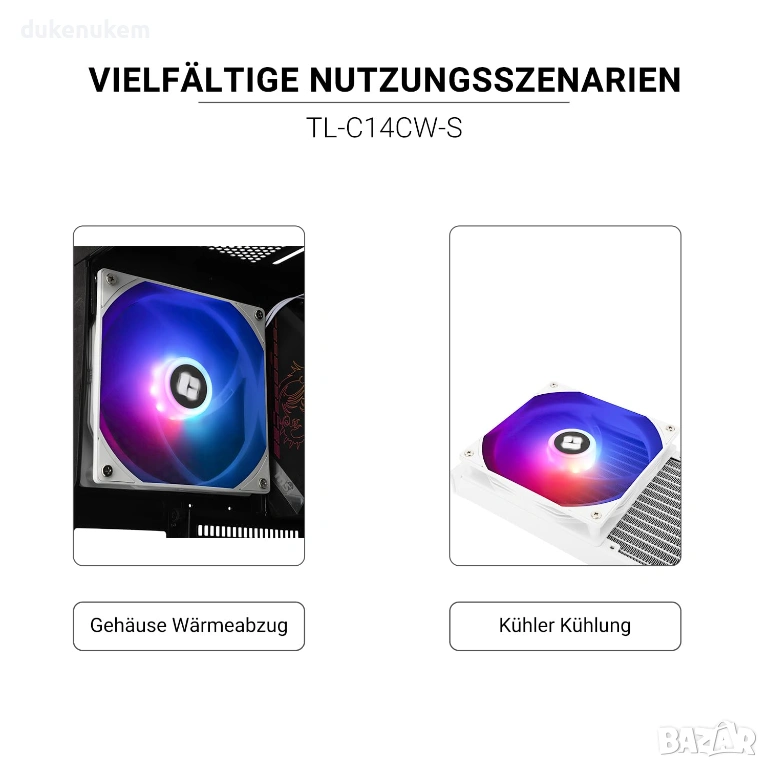 PWM вентилатор TL-C14CW-S 140 mm – тих, ARGB, бял
