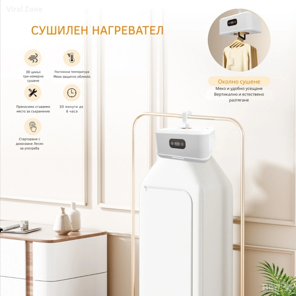 Преносима електрическа сушилня за дрехи – компактна, сгъваема, с таймер и 3D циркулация