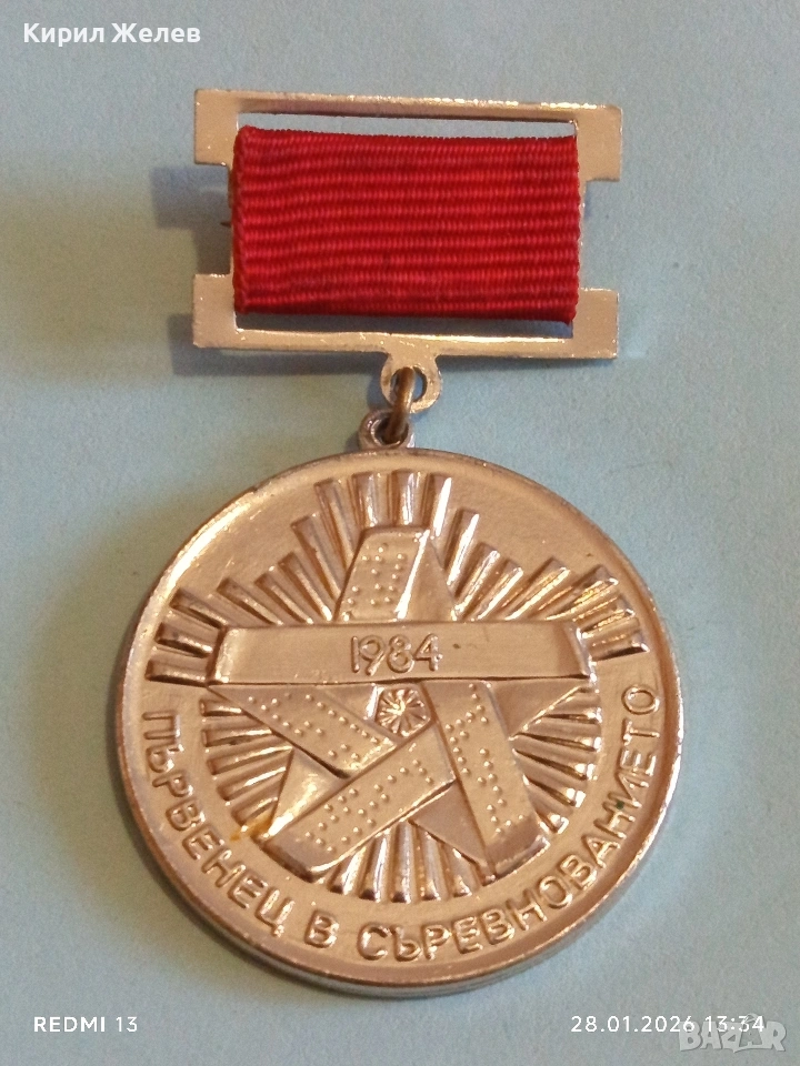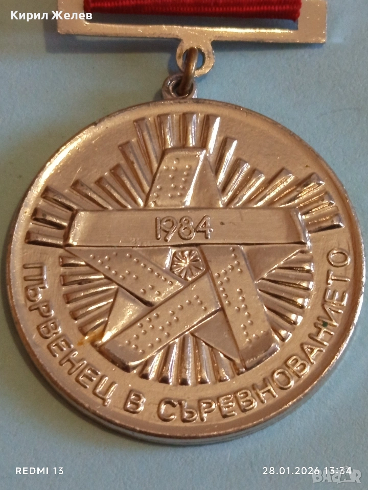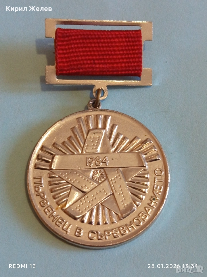 Рядък соц медал ПЪРВЕНЕЦ в СЪРЕВНОВАНИЕТО 1982г. за КОЛЕКЦИЯ 53522