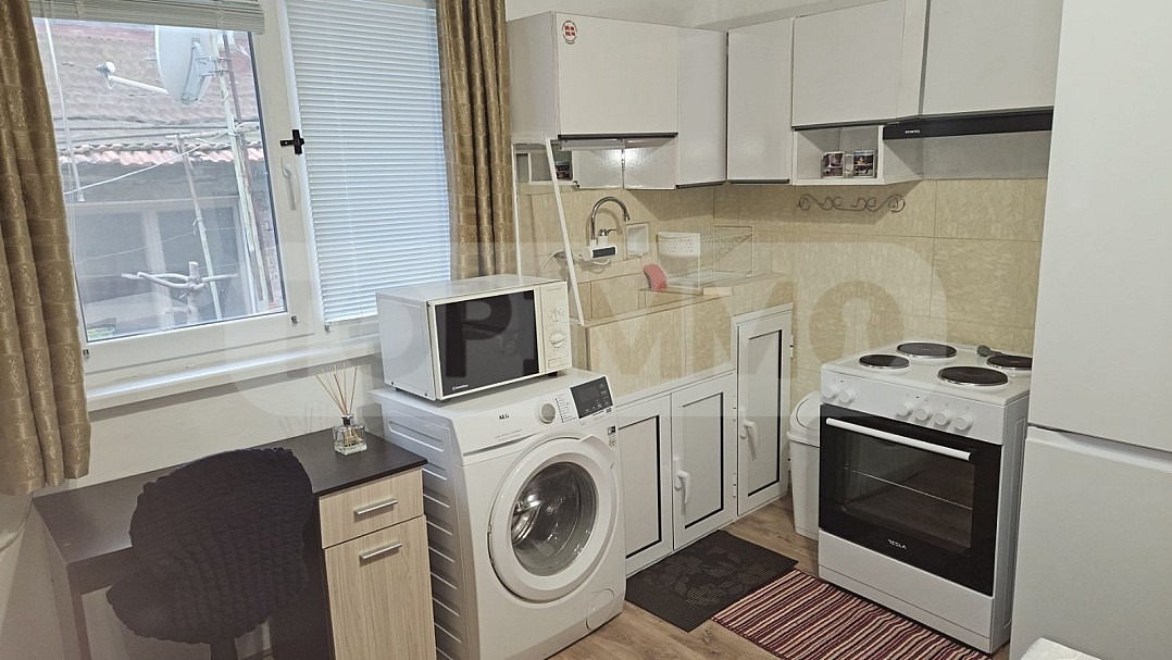 Имотът е след освежаване, с изцяло южно изложение, състои се от антре, дневна, кухня и баня с тоалетна. Оборудван с бяла и черна техника, японски климатици.