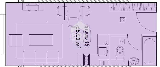 Aтелие номер 15 се намира на трети жилищен етаж и се състои от просторно входно антре, баня с тоалетна, всекидневна с кухненски бокс и трапезария .