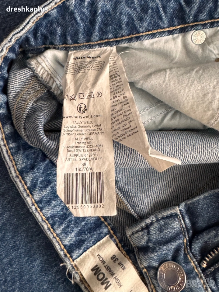 Продавам стилни дамски дънки Tally Weijl, модел Mom Fit с висока талия, в модерен светлосин деним. Перфектни за ежедневие, работа или разходки, дънките подчертават талията и осигуряват удобство през целия ден.
