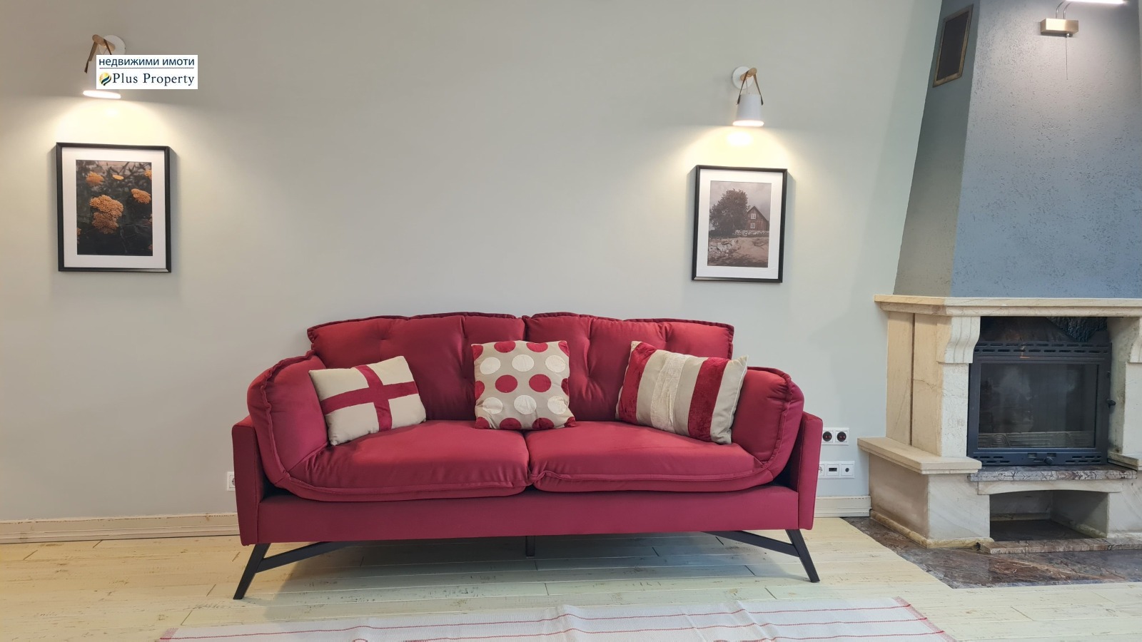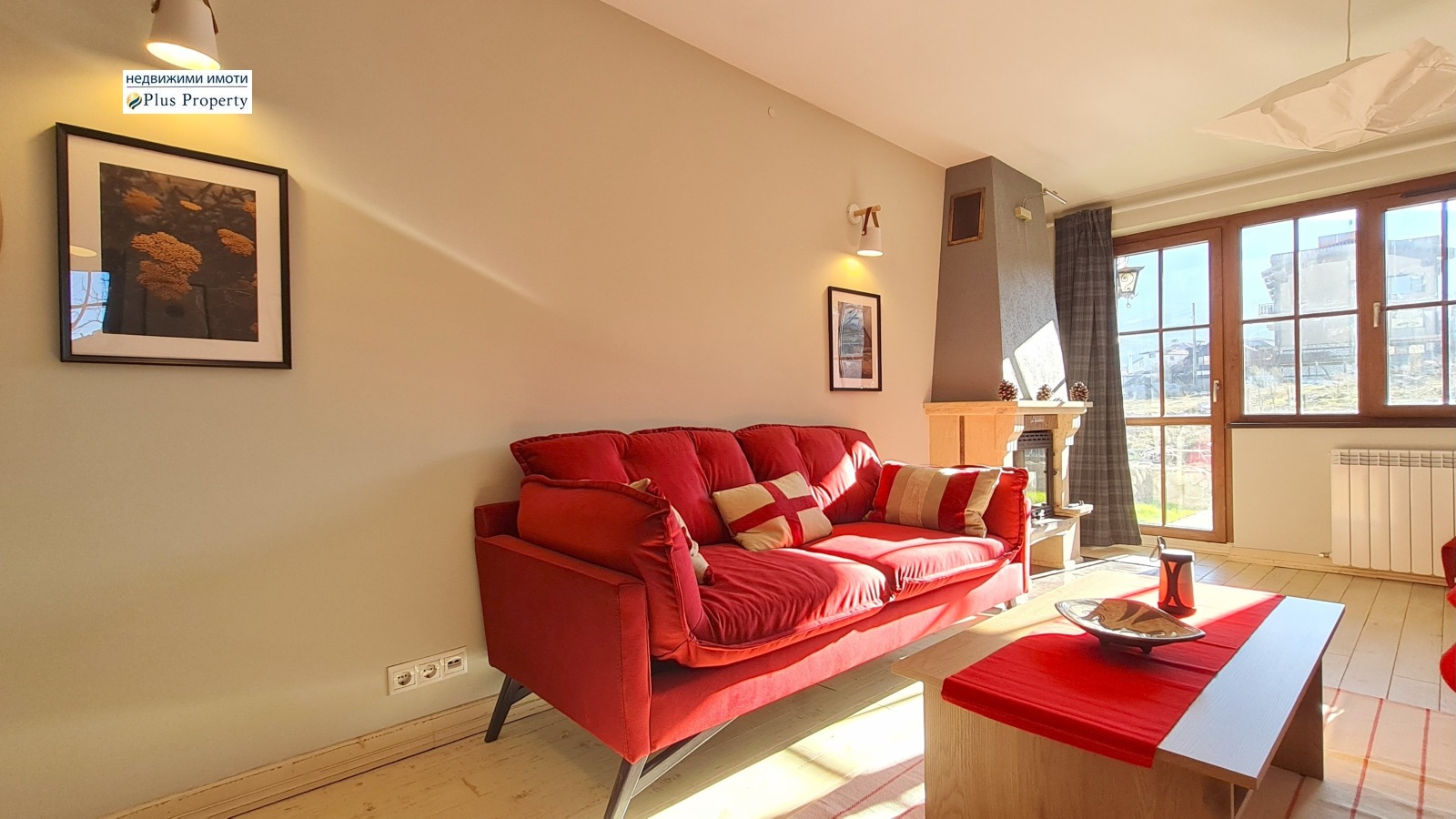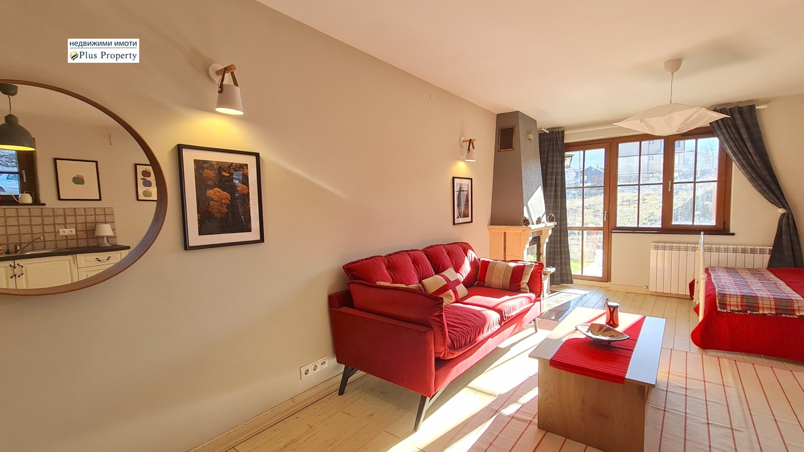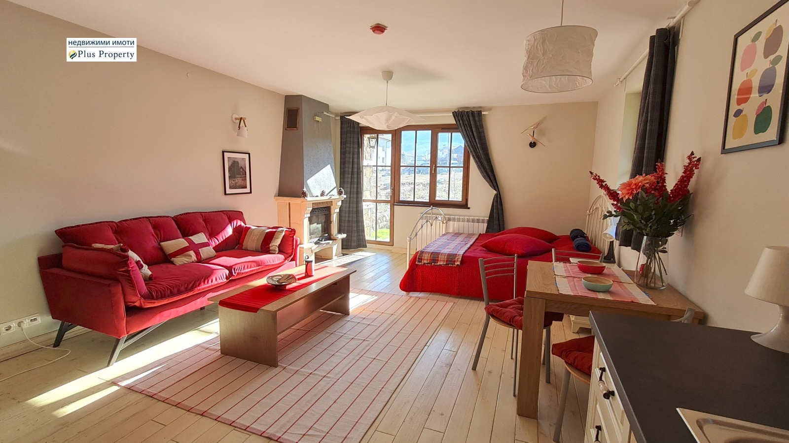 Имотът е завършен с висококачествени материали: подове от масивно дърво, луксозно завършена баня с каменни плочки, кухня от масивно дърво по поръчка с качествени уреди и красива камина на дърва.