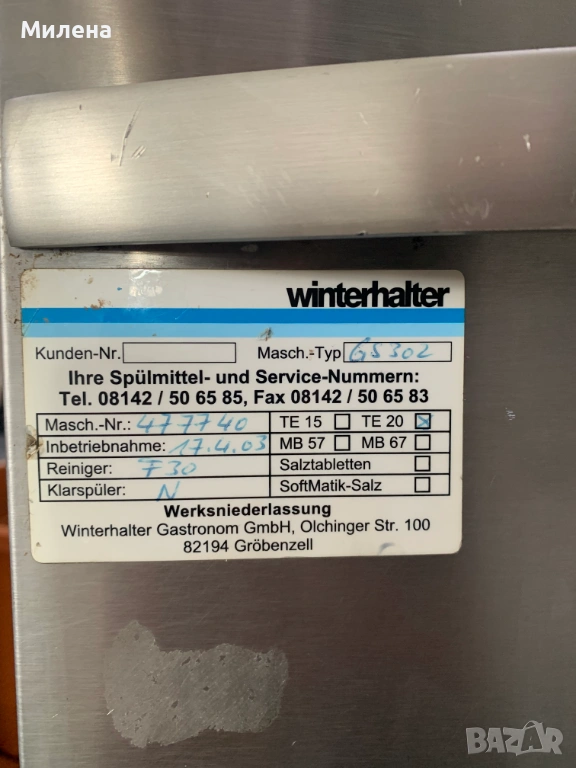 Професионална съдомиялна Winterhalter GS 302 → Обява 53257561