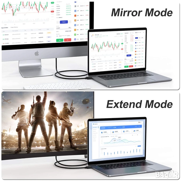 Mirror и Extend режим – дублиране на екрана или разширен работен плот за по-ефективна работа