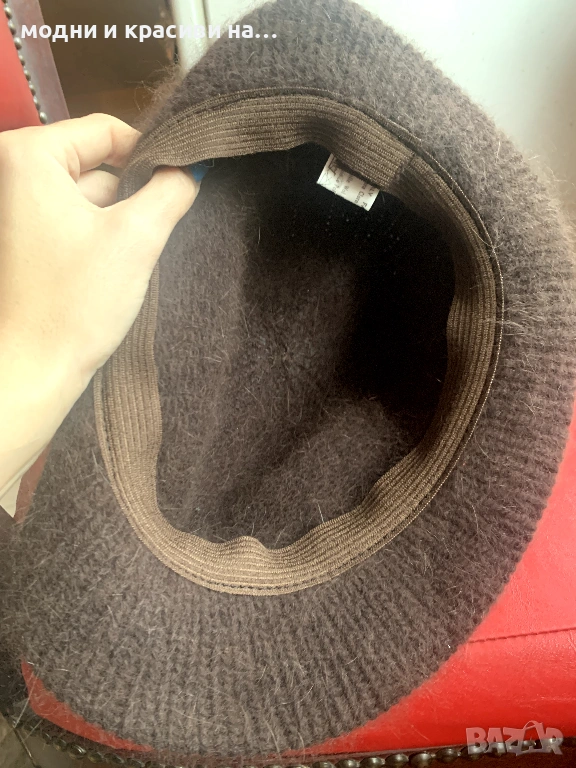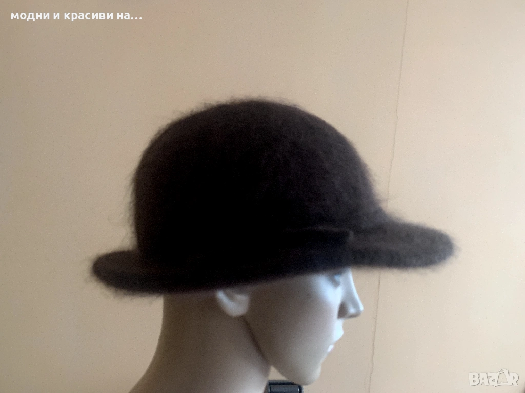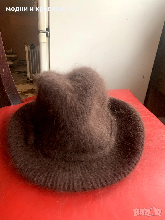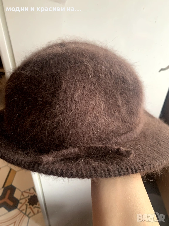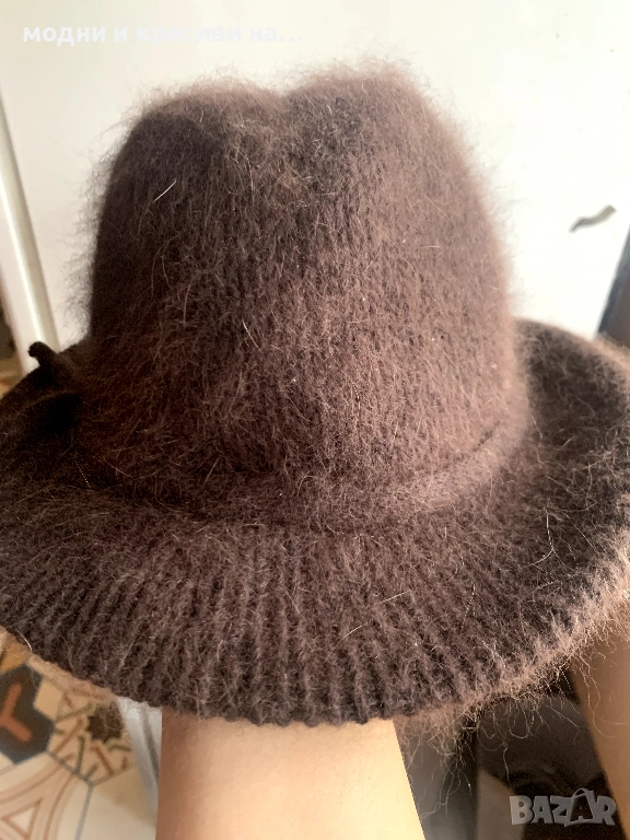 2. Шапка федора в шоколадово кафяво. Много пухкава и мъхеста благодарение на съдържащата се в нея ангора. Универсален цвят, който се съчетава с всичко, особено с класическата комбинация бежово- кафяво, с която няма как да се сбърка. Съдържащати се в нея ангора и вълна я правят подходяща за носене през студените месеци.