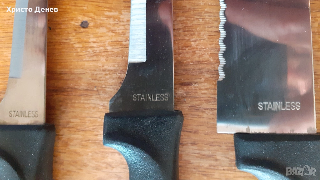 чисто нови, не са ползвани. Стойка от естествено дърво, стомана на ножовете и