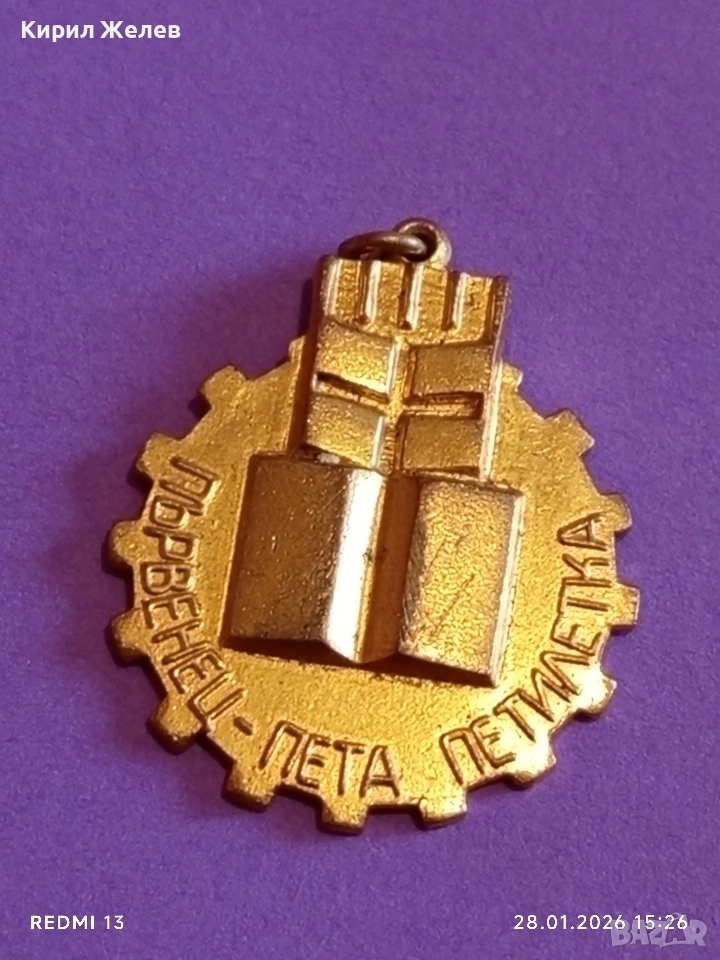 Медал от соца ПЪРВЕНЕЦ ПЕТА ПЕТИЛЕТКА за КОЛЕКЦИЯ ДЕКОРАЦИЯ 53552