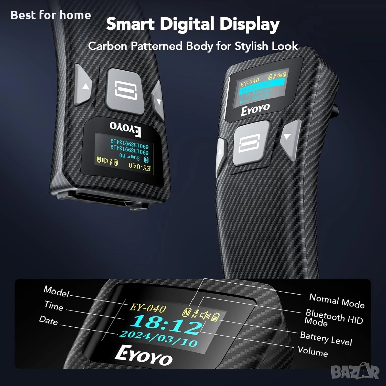 Eyoyo EY040 Преносим мини 2D Bluetooth баркод скенер с интелигентен цифров дисплей