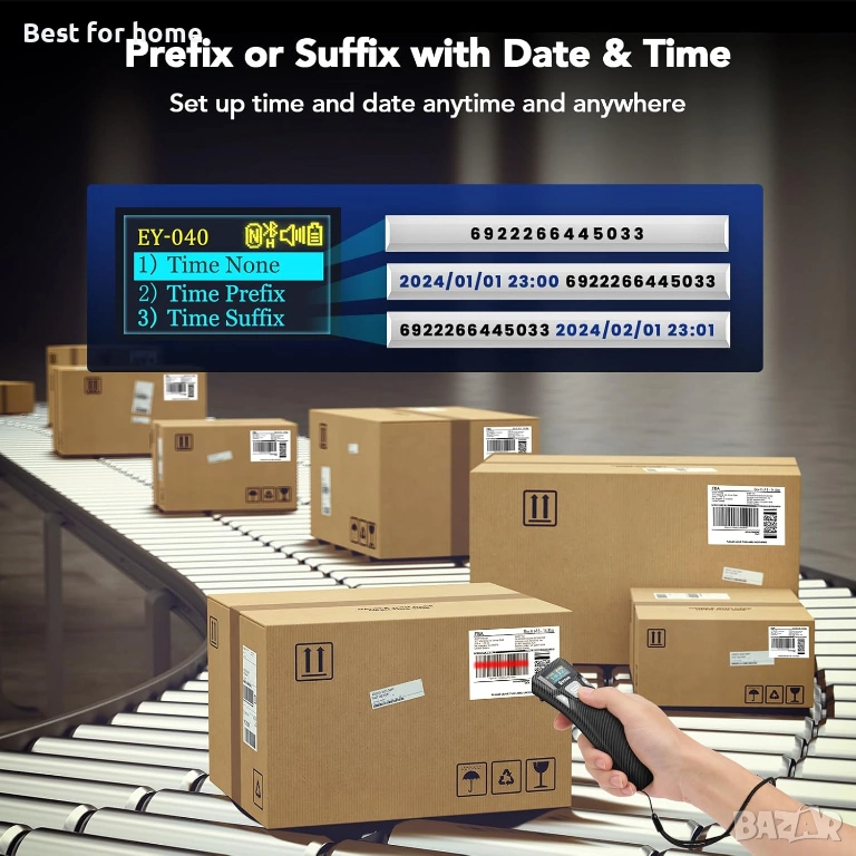 Персонализирана конфигурация: Този QR скенер поддържа режим на незабавно качване и съхранение, добавяне на персонализирани префикси/суфикси, скриване на предни и задни знаци, добавяне на клавиши на клавиатурата (CR, LF, TAB, CR&LF и др.), показване или скриване на клавиатурата за iOS система, поддръжка (задействане с клавиш, автоматично разпознаване, режим на непрекъснато сканиране), активиране или деактивиране на типа баркод и т.н.