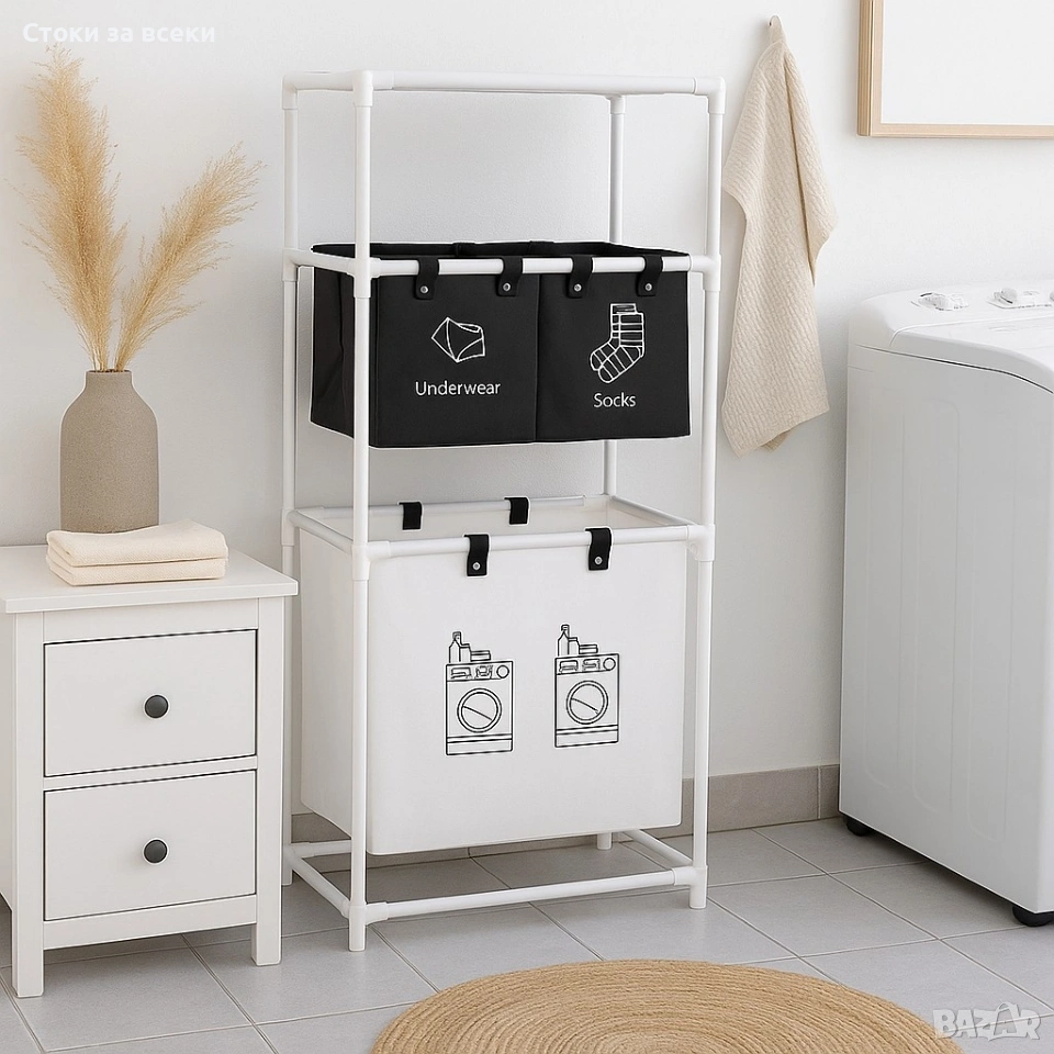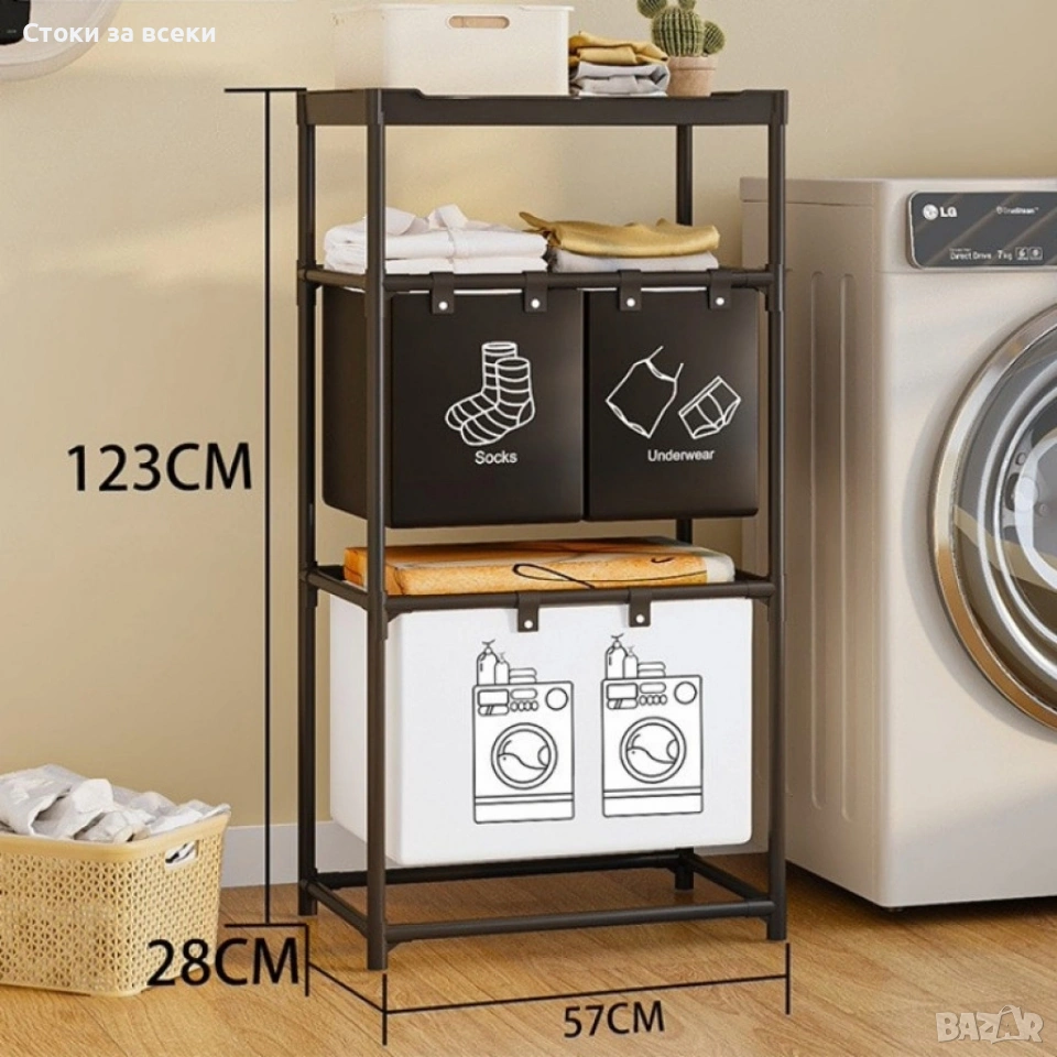 Мултифункционален органазйер за мръсни дрехи с 3 кошници и 3 рафта → Обява 53258837