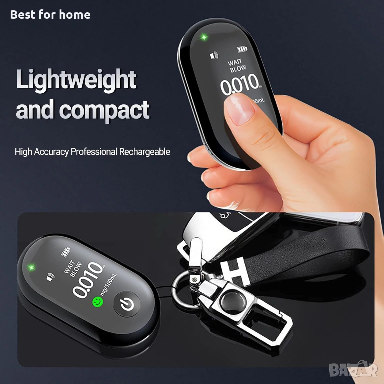 Диапазон на алкохол: 0-500 PPM Характеристики: Мини, презареждащ се, точен Размери: 6 см x 3,1 см x 1,9 см/2,36" x 1,22" x 0,75" (приблизително)
