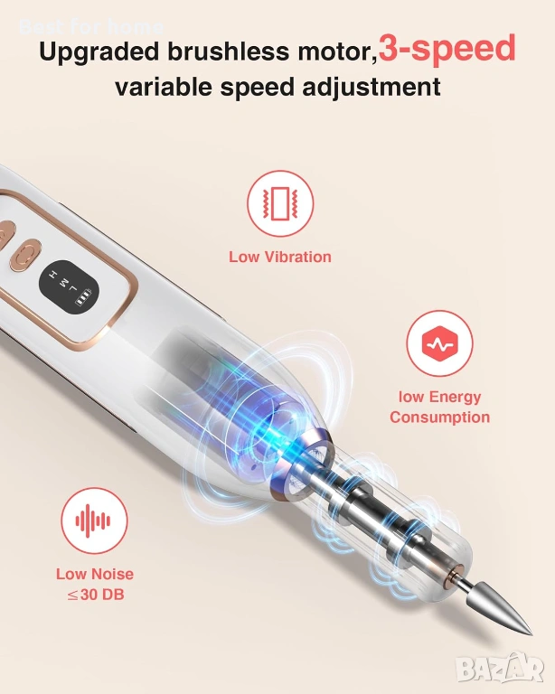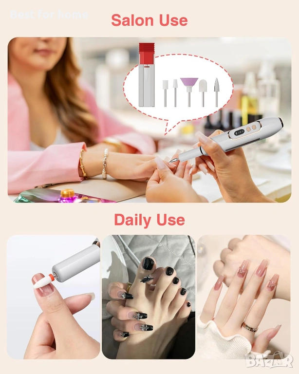 Прецизна грижа за ноктите на върха на пръстите ви: Електрическата бормашина за нокти е проектирана за щателна грижа за ръцете и краката, предлагайки високоскоростно въртене за лесно оформяне, пилене и полиране на естествени нокти. Това е най-добрият инструмент за поддържане на перфектни като в салон нокти от уюта на собствения ви дом, спестявайки ви време и пари за професионален маникюр и педикюр.
