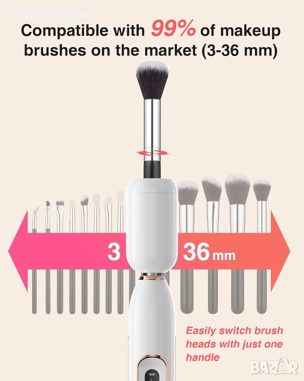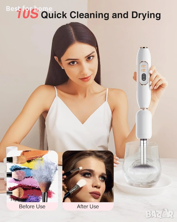 Универсална съвместимост за всички ваши четки: Нашата патентована универсална яка е подходяща за впечатляващите 99% от четките, като е подходяща за широка гама от размери и форми. От фон дьо тен до сенки за очи, тази машина е универсално решение за всички ваши нужди от почистване на четки. Край на мъките с множество яки – просто поставете и завъртете за цялостно почистване.