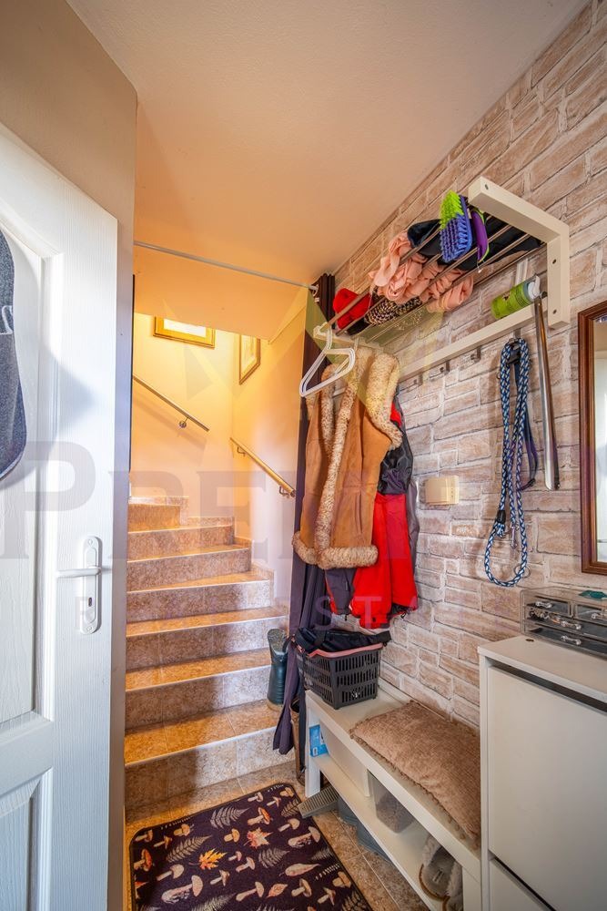Втори етаж: две спални, баня с тоалетна и тераса, от която се открива великолепна панорамна гледка към околността.