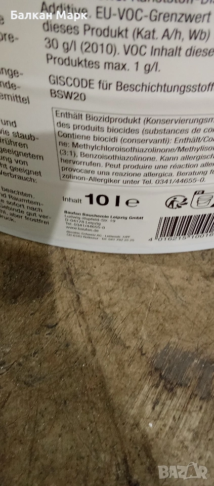 Продавам Baufan Latex Bindemittel – 10 литра, висококачествен немски латексен свързващ агент за бои и тапети. Подходящ за подсилване на лепилни и варови бои, тапетни лепила и като защитно прозрачно покритие за вътрешни стени.
