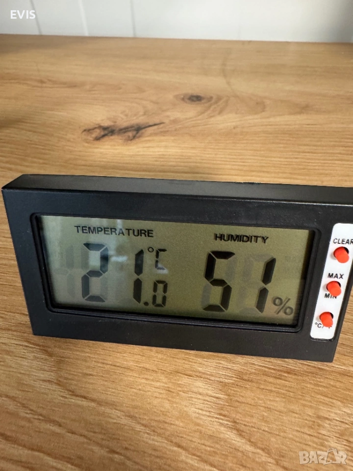 Продавам дигитален уред за измерване на температура и влажност на въздуха. Подходящ за дома, офис, склад, оранжерия, детска стая и др.