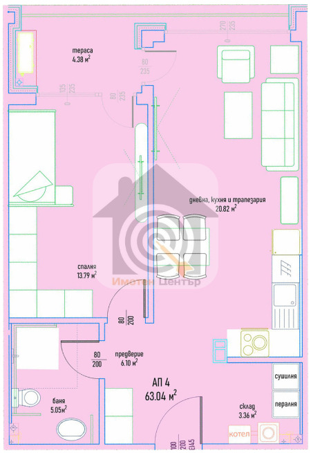 Жилището е с обща площ 76.03 м² и чиста площ 63.04 м², с функционално разпределение и светли помещения подходящо както за собствен дом, така и за инвестиция.