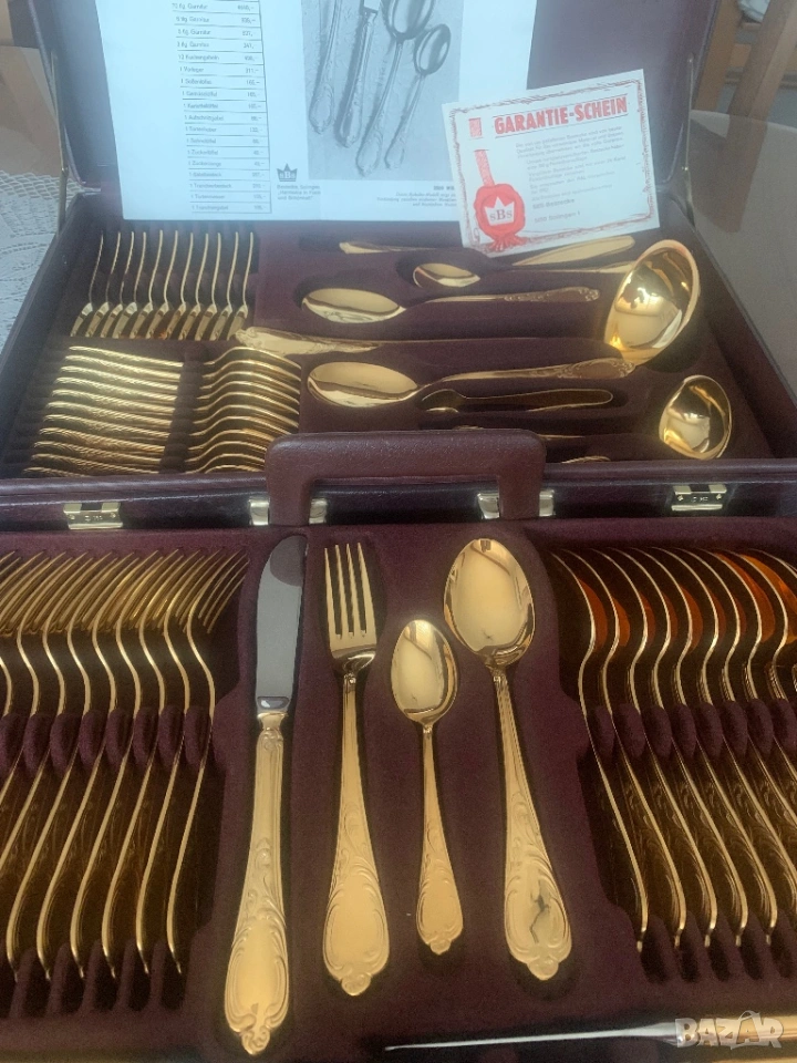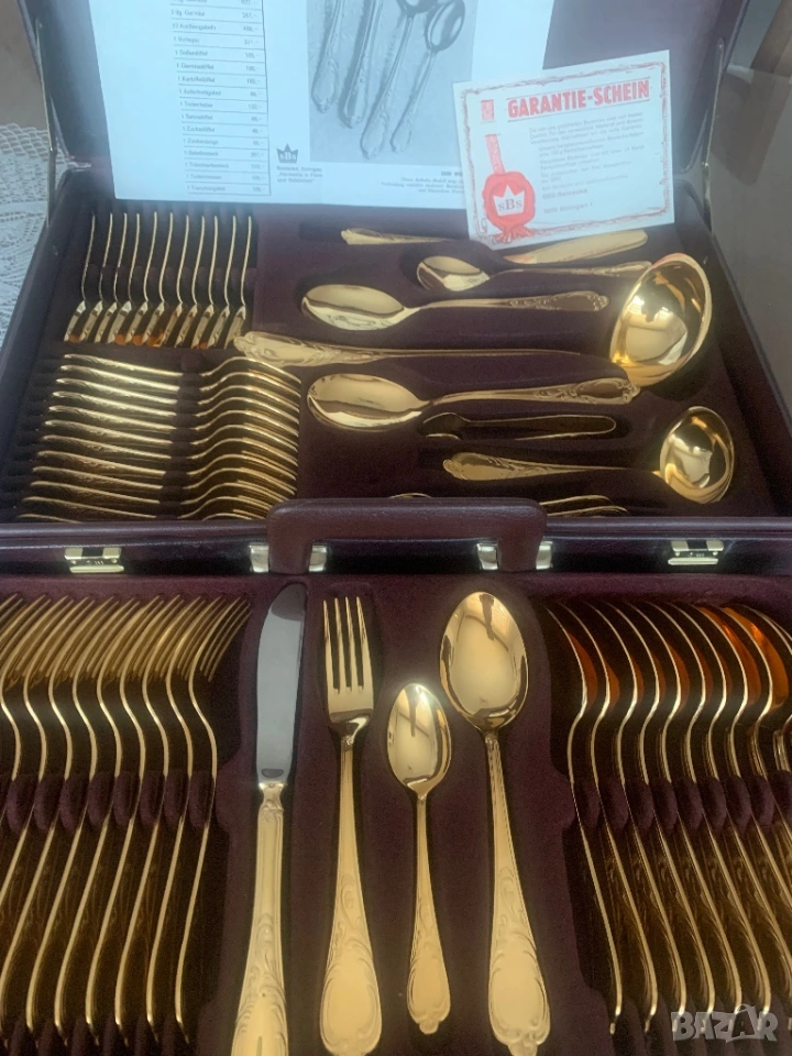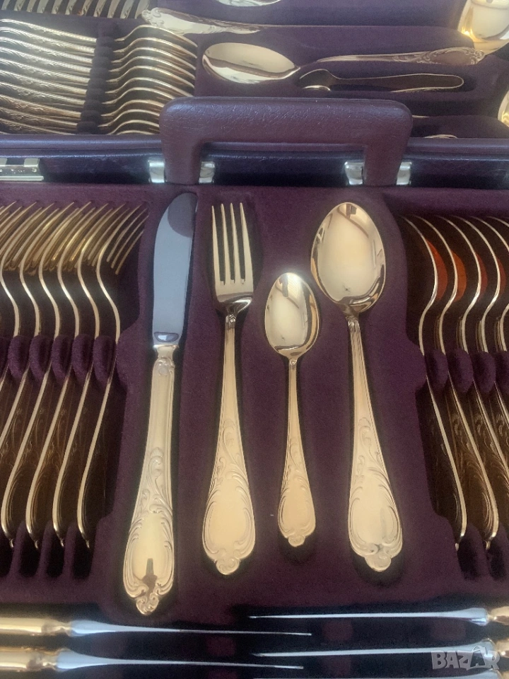 Луксозен комплект прибори за 12 човека* 23/24 карата твърдо златно покритие* 70 броя → Обява 53259901