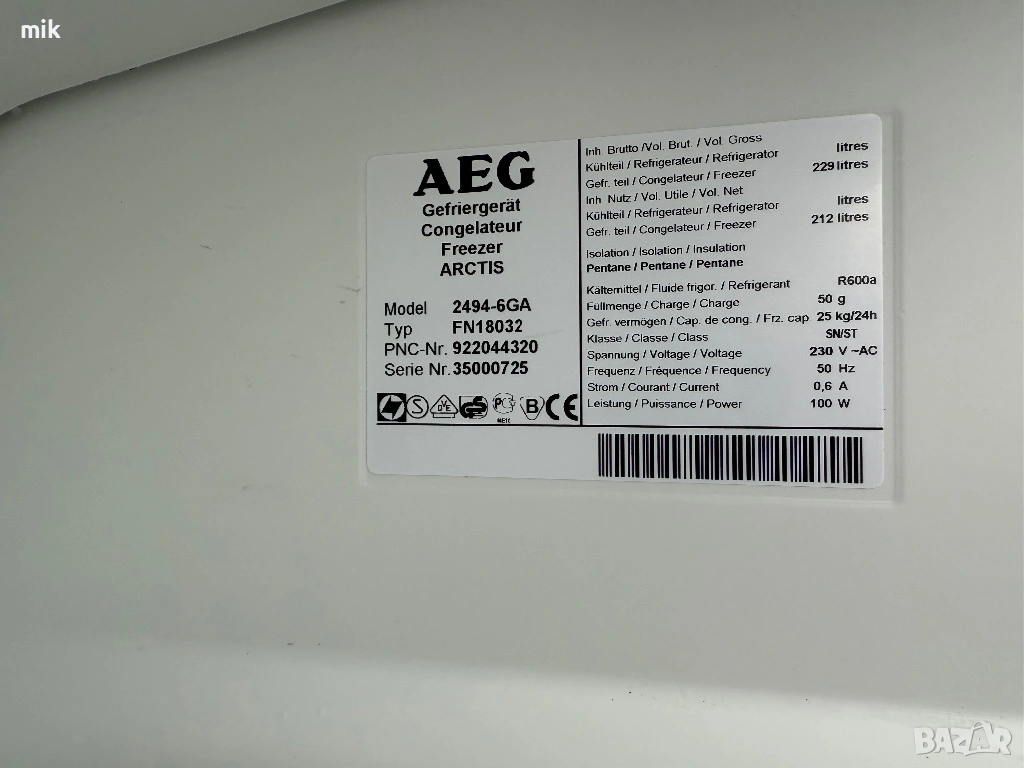 Фризер AEG No frost система. Перфектни уплътнения. Оригинално здраво оборудване. Закупен от Германия!