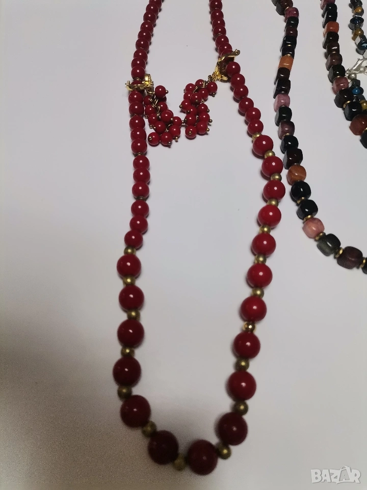 ЦЕНА ЗА ВСИЧКО!!! Пет броя красиви гердани и колиета + 1 чифт обеци към червения гердан, от различни полускъпоценни камъни. представени на снимки. НЕ СА НОСЕНИ, някои с етикет.