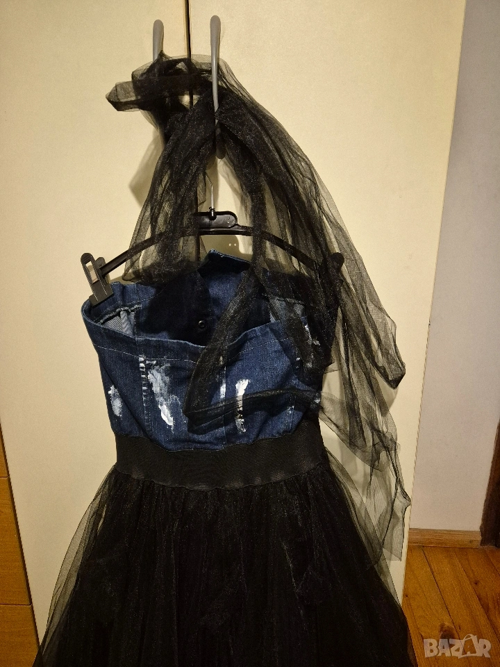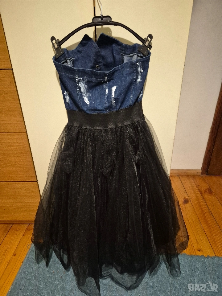 почти нова, размер S, с бюстие, отделно колан ат гюл, с принт върху дънковата част, Stela