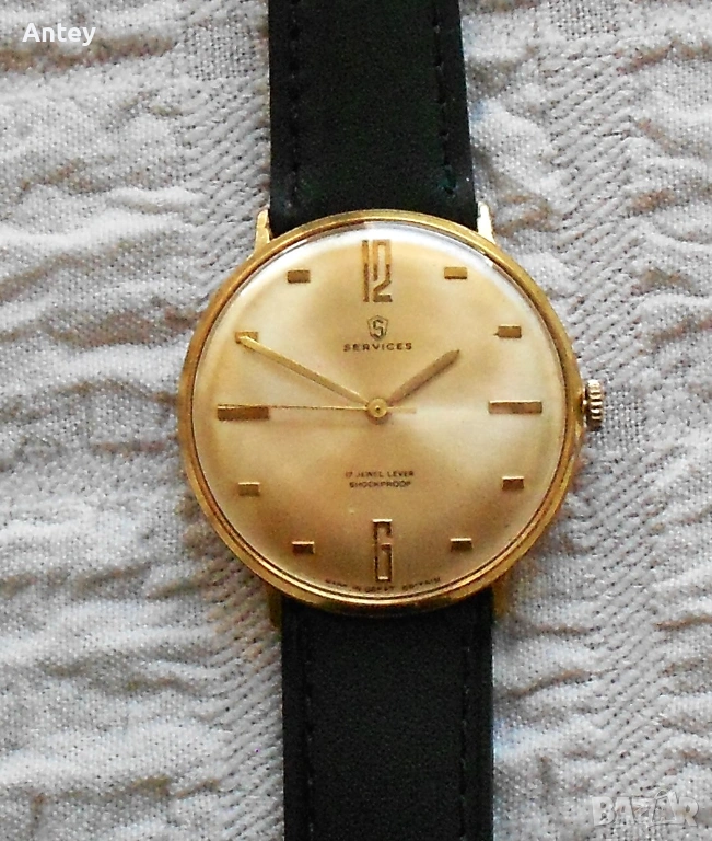 цвят "шампанско", чист, с оригинални стрелки и маркери. Ново стъкло. Механизмът, калибър 627, работи нормално и поддържа прилично време. Сервизната история не ми е известна.Часовникът е с нова, черна кожена каишка. ЦЕНА – 39 евро.
