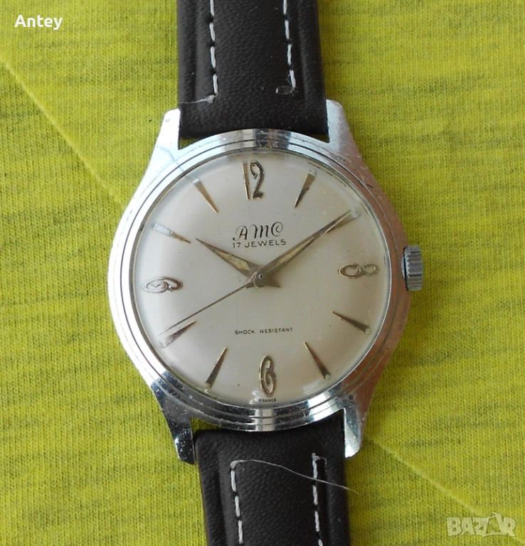 ФРЕНСКИ механичен часовник в много добро състояние. Хромираната 33 мм. каса е много добре запазена. Оригинален циферблат със сребристи стрелки и маркери. Чисто стъкло. Механизмът Lorsa P62 работи нормално и поддържа точно време. Сервизна история - неизвестна.