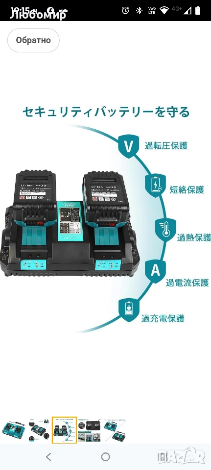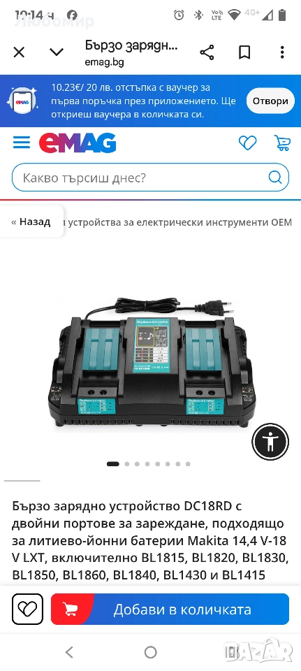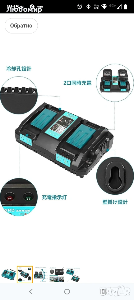 Зарядно устройство Makita с 2 гнезда. Съвместими батерии: Makita 18 V BL1815N BL1820B BL1830 BL1830B BL1840 BL1850 BL1850B BL1860B Makita 14.4 V BL1415N BL1430 BL1430B BL1440 BL1450. Може да зарежда BL1460B и др. Забележка: Не поддържа BL1415G и BL1815G. Моля, обърнете внимание: