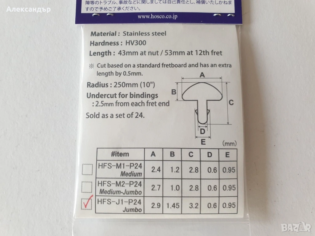 Стоманени прагчета за китара 2.90 Х 1.45 Hosco Japan