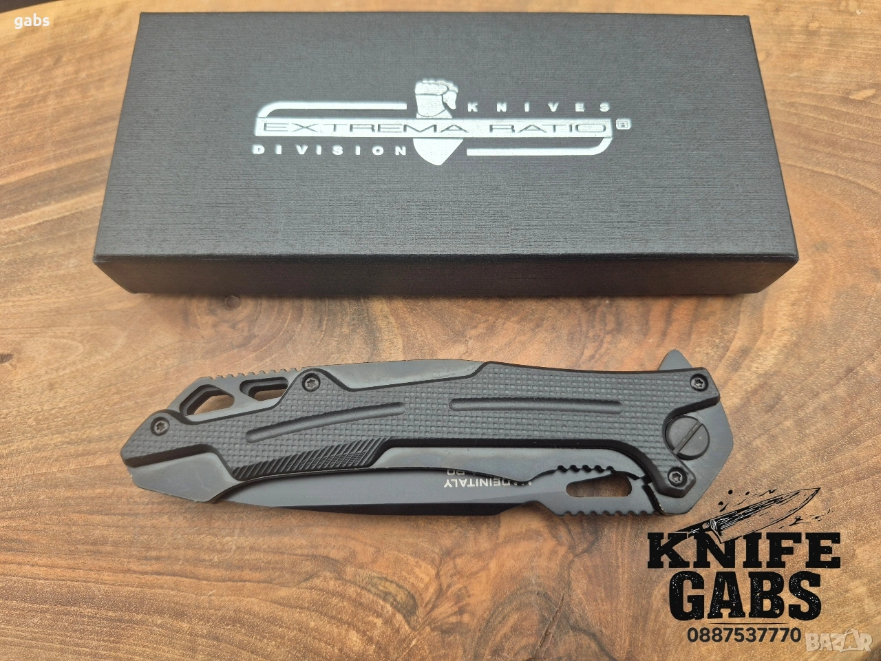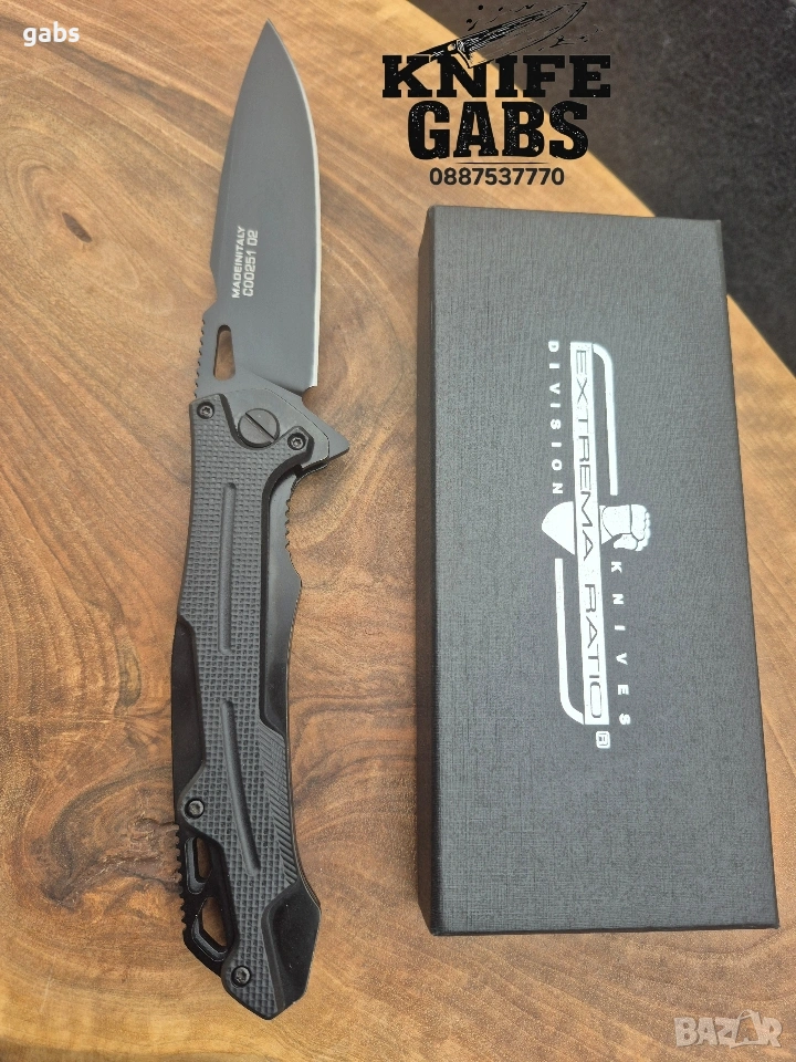 Сгъваем нож EXTREMA RATIO C251 с изключително стилен дизайн, който съчетава здравина и сигурност. Острието е изработено от висококачествена стомана D2, гарантираща дълготрайна острота. Дръжката от G10 с вложки от стомана осигурява сигурен и удобен захват. За максимално удобство, ножът разполага с аксиални лагери. Сигурността при употреба е подсигурена от надеждното заключване Liner Lock.Ножът разполага с отвор за връзка.Този нож е отличен избор за всеки, който цени функционалността и елегантността.