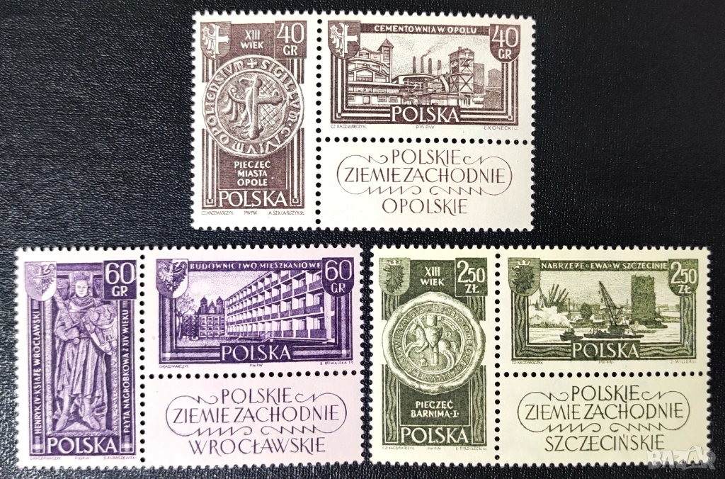 7. Полски западни територии. Неразкъсани тройки с винетки. №№ 1247-1252. Цена 2,70 €
