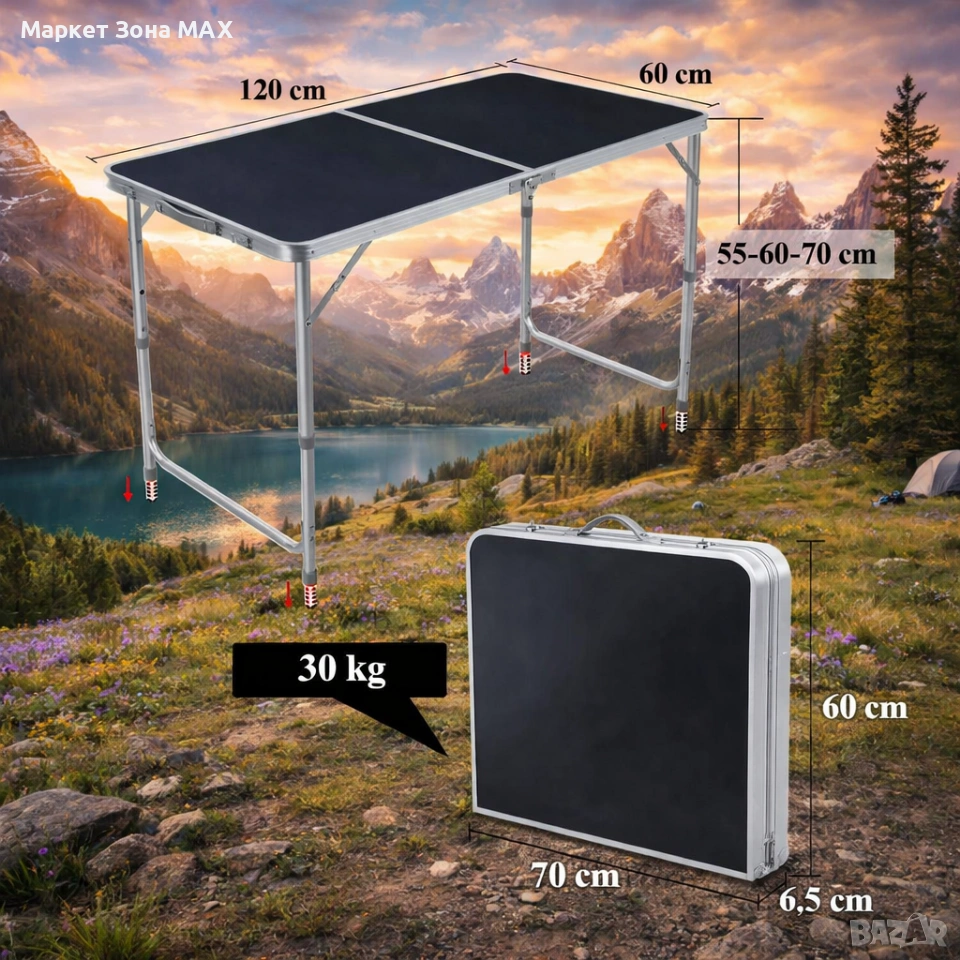 Размери на масата (разгъната) 120 см x 60 см;