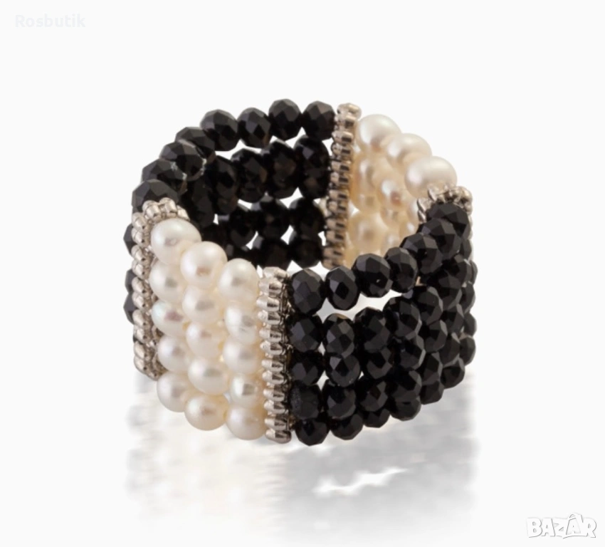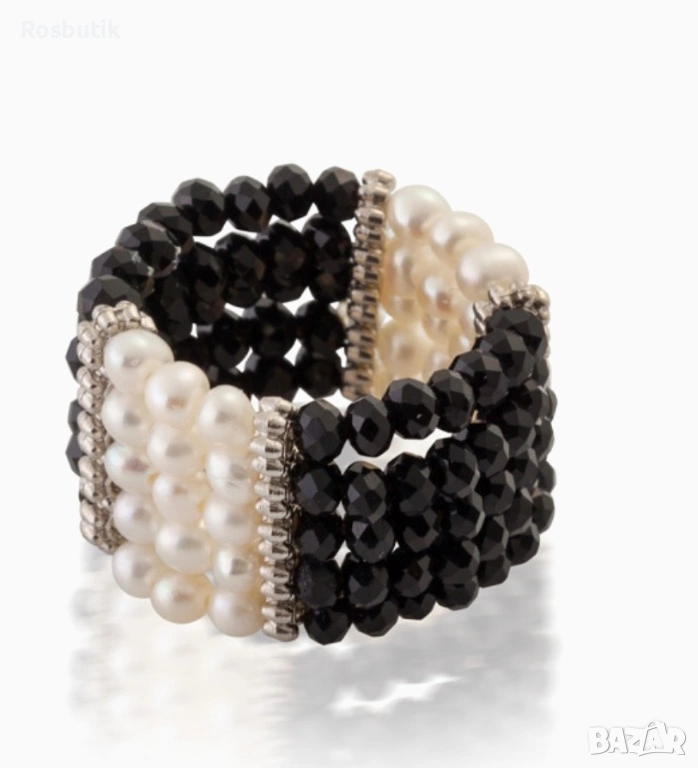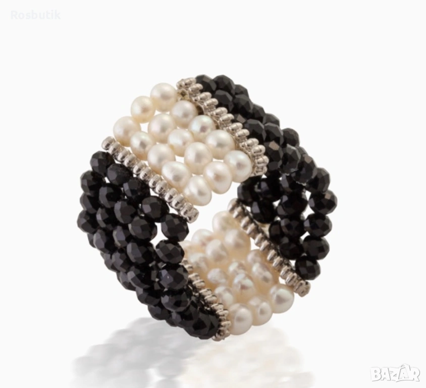 Уникален пръстен с естествени перли и оникс → Обява 53262039