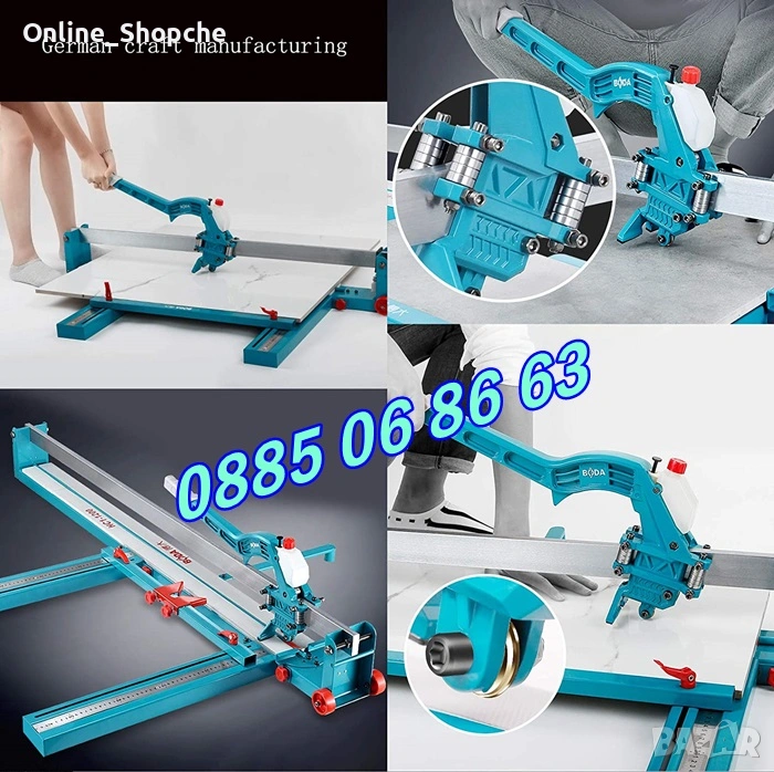 Професионална машина за рязане на плочки с резервоар снабдена с всичко необходимо за безкомпромисно и продължително рязане на всякакви видове фаянсови плочки, гранитогрес, теракот и други подобни подови настилки.