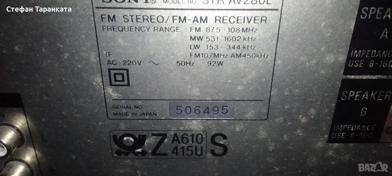 усилвател със радио тунер SONY → Обява 53262121