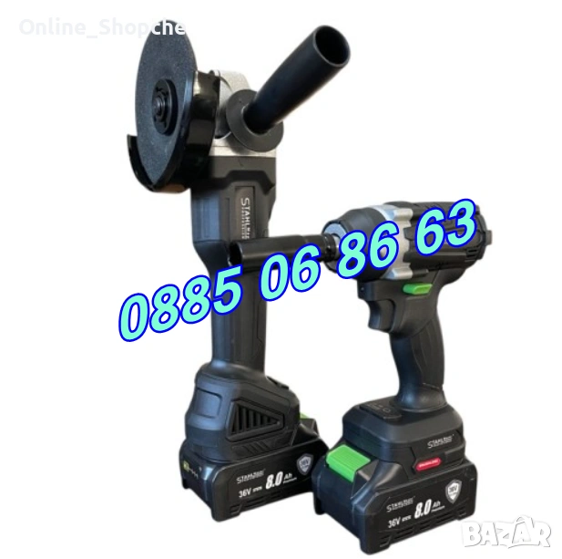Комплект от акумулаторен ударен Гайковерт и Ъглошлайф 36V 8,0Ah с подарък дълбока вложка StahlMayer Black XR
