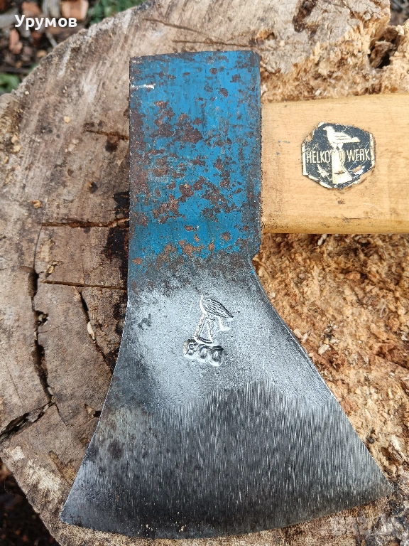 Топор Helko Werk 800 грама. Брадвата е в отлично състояние, здрава, без заварки и спуквания. Отлично острие със ясна маркировка. Оригинална дръжка със запазен лак и стикер на производителя.