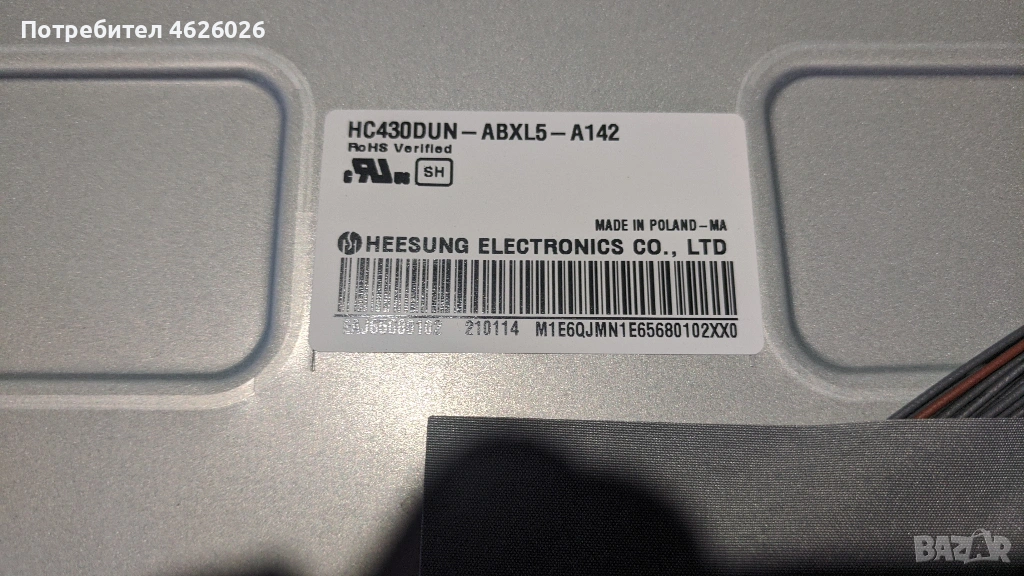 LG 43LM6300PLA-EAX68167602-EAX68210401/LG43T-19F1/-BOE HV430FHB-N10/47-6021141, снимка 1 - Части и Платки - 53262296 LG 43LM6300PLA-EAX68167602-EAX68210401/LG43T-19F1/-BOE HV430FHB-N10/47-6021141, снимка 2 - Части и Платки - 53262296 LG 43LM6300PLA-EAX68167602-EAX68210401/LG43T-19F1/-BOE HV430FHB-N10/47-6021141, снимка 3 - Части и Платки - 53262296 LG 43LM6300PLA-EAX68167602-EAX68210401/LG43T-19F1/-BOE HV430FHB-N10/47-6021141, снимка 4 - Части и Платки - 53262296 LG 43LM6300PLA-EAX68167602-EAX68210401/LG43T-19F1/-BOE HV430FHB-N10/47-6021141, снимка 5 - Части и Платки - 53262296 LG 43LM6300PLA-EAX68167602-EAX68210401/LG43T-19F1/-BOE HV430FHB-N10/47-6021141, снимка 6 - Части и Платки - 53262296 LG 43LM6300PLA-EAX68167602-EAX68210401/LG43T-19F1/-BOE HV430FHB-N10/47-6021141, снимка 7 - Части и Платки - 53262296 LG 43LM6300PLA-EAX68167602-EAX68210401/LG43T-19F1/-BOE HV430FHB-N10/47-6021141, снимка 8 - Части и Платки - 53262296 LG 43LM6300PLA-EAX68167602-EAX68210401/LG43T-19F1/-BOE HV430FHB-N10/47-6021141, снимка 9 - Части и Платки - 53262296 LG 43LM6300PLA-EAX68167602-EAX68210401/LG43T-19F1/-BOE HV430FHB-N10/47-6021141, снимка 10 - Части и Платки - 53262296 LG 43LM6300PLA-EAX68167602-EAX68210401/LG43T-19F1/-BOE HV430FHB-N10/47-6021141, снимка 11 - Части и Платки - 53262296 LG 43LM6300PLA-EAX68167602-EAX68210401/LG43T-19F1/-BOE HV430FHB-N10/47-6021141, снимка 12 - Части и Платки - 53262296 1/12