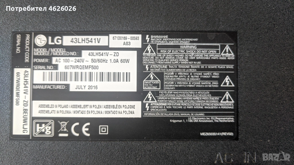 ЗАХРАНВАНЕ--EAX66822701/1.5/-EAY64308601-65лв