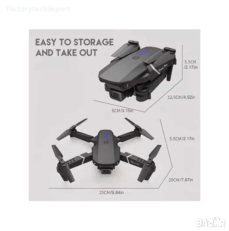 Дрон E88 PRO с две HD камери и 15 мин. полет + чанта